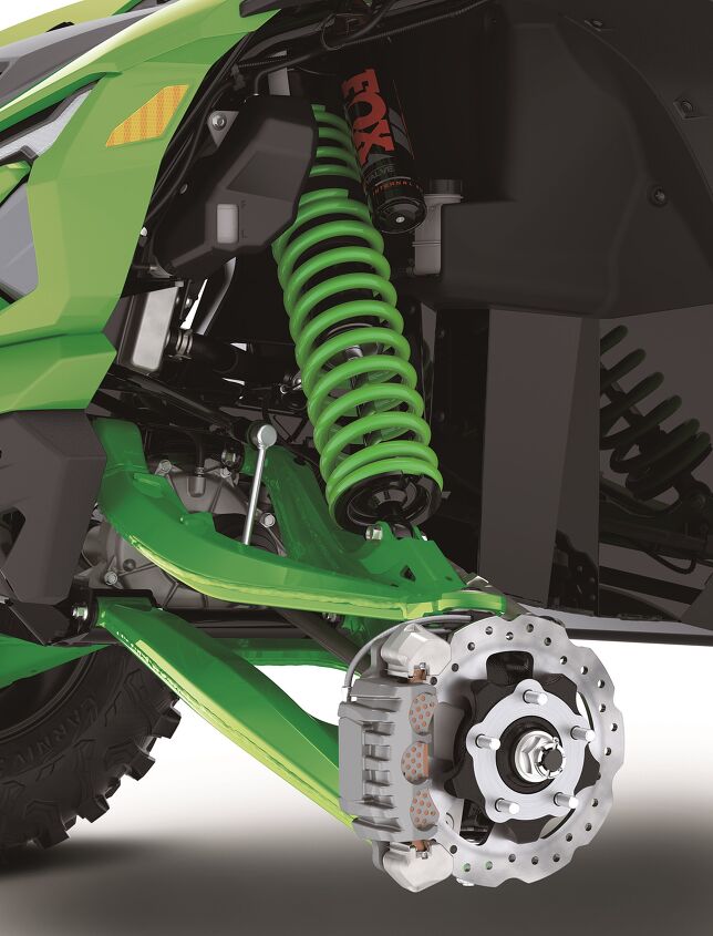 A double wishbone front suspension offers excellent performance with 23.2 inches of movement, while the rear provides slightly more clearance at a complete 24 inches of travel due to a four-link trailing arm system using durable, reinforced parts.