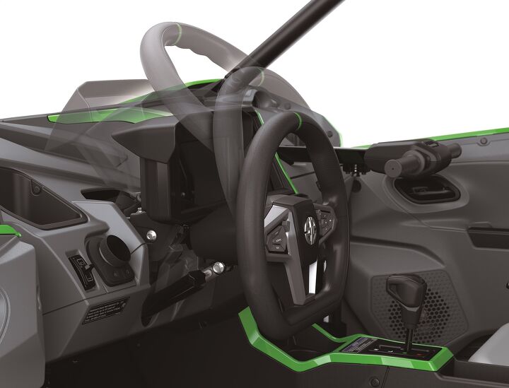 With so much power on tap, Kawasaki has equipped the machine with Full, Mid, and Low Power modes. The company says the middle and lower of the two are better for things like unloading the Teryx from a trailer, and we suspect they should be used for when less experienced drivers get behind the wheel.