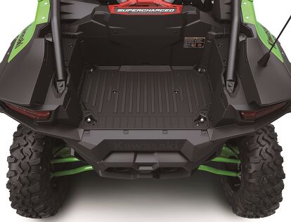 Clearly, the highlight is the engine. This unit delivers 250 horsepower and 146.2 lb-ft of torque due to a 999cc liquid-cooled four-stroke inline-four. It offers the greatest performance among all-terrain vehicles currently available, and with a dry weight of 2,363 pounds, it achieves a power-to-weight ratio of 9.4 lb/hp. Truly remarkable.