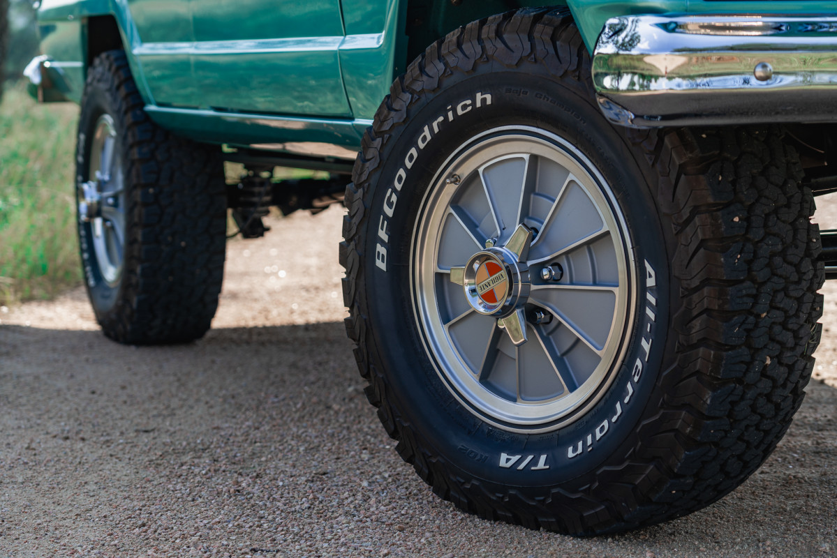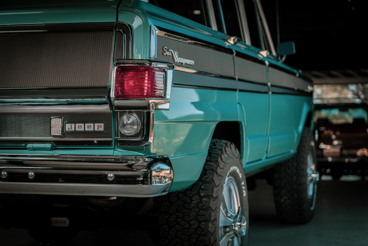 First introduced in 1966, the Super Wagoneer played a key role in shaping the concept of a luxury SUV long before the category became so popular, with numerous brands now offering their own versions. The Vigilante team maintained the recognizable, square design, chrome details, and classic elements while restoring the body and painting it in Empire Blue. One of the few signs that this particular model is not standard is the large BFGoodrich tires, which provide a more elevated and rugged appearance compared to the original. While someJeep restomodschallenge the original car's principles, the Vigilante team maintained its core identity while incorporating necessary improvements without exceeding reasonable limits.
