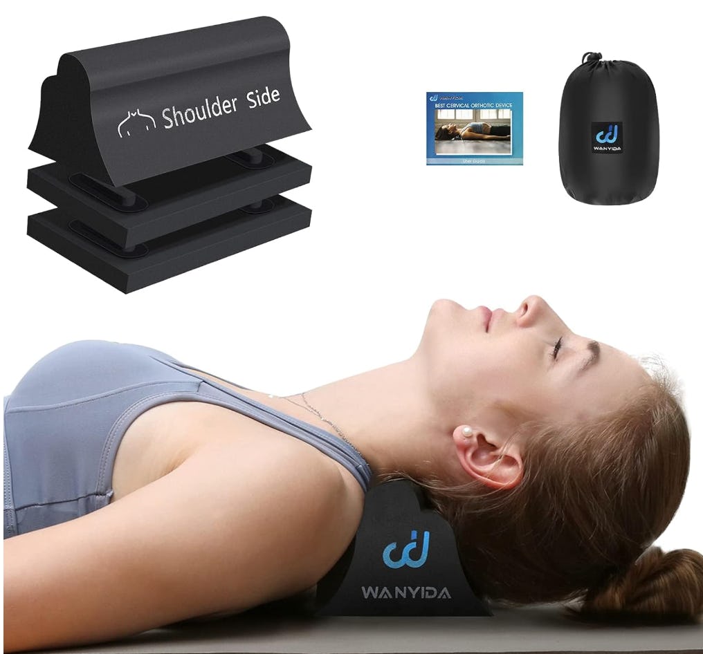 Amazon -This neck and shoulder pillowis constructed from solid, high-density EVA foam that can be positioned behind your neck to provide support, stretch, and ease tension in your head and shoulders following a long day. It includes two adjustable layers to offer three distinct height options based on the angle you require, and it features a spine-comfortable curve that is designed for ease of use.