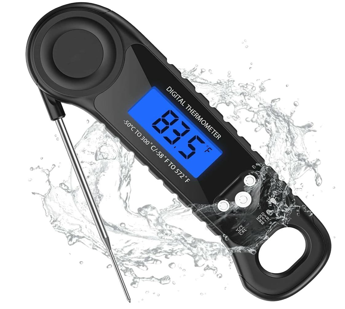 Amazon -Perfect for experienced grillers and beginners, thismeat thermometerFeatures a backlit digital display that shows the temperature within two to four seconds. It is water-resistant, has a non-slip handle, and includes a powerful magnet for attaching it to the side of your stove or grill for convenient use. It can measure temperatures ranging from -58 to 572 degrees, and the 4.5-inch stainless steel probe keeps your hands safe from the heat.