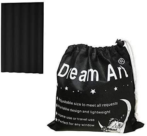 A darkening curtain featuring suction cups and Velcro for easy placement in any location
