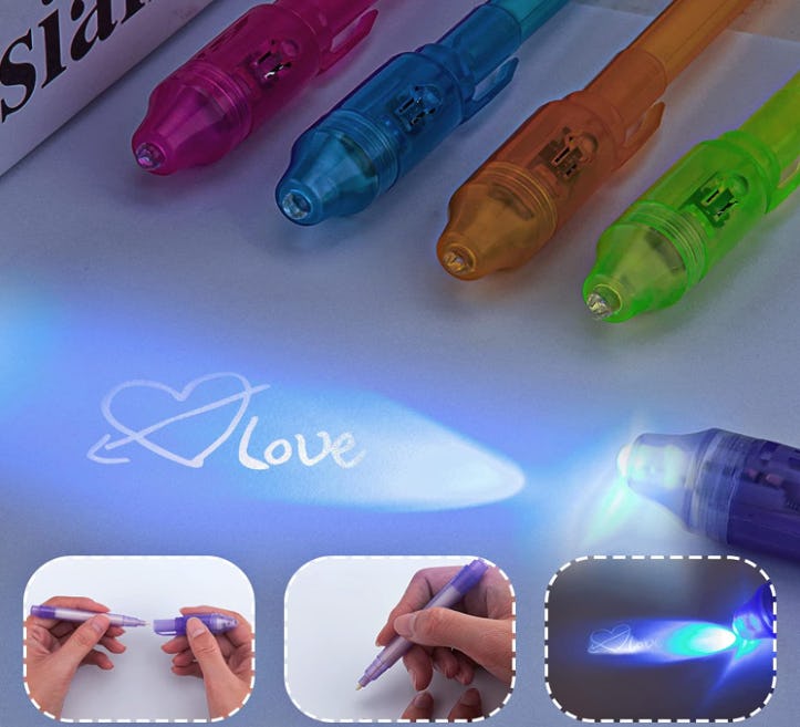 amazon -This spy pen setis essentially a pass to hours of hidden enjoyment. Each pen produces invisible writing until you use the included UV light to uncover your drawings, codes, and secret messages. The pen can be used on paper, fabric, and even skin. With five vibrant pens in the set, it makes an ideal party gift or holiday stocking filler.
