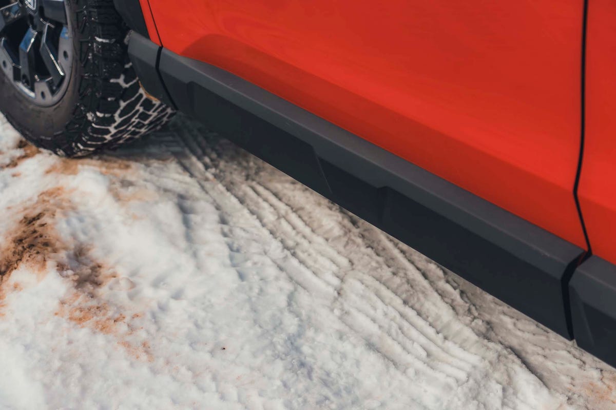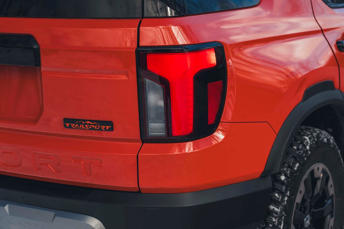 Underbody protection plates, amber daytime running lights, and visible orange towing hooks set the TrailSport model apart.