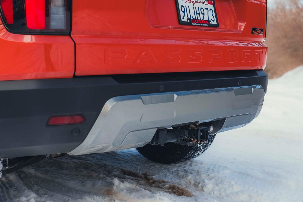Prominent orange tow hooks, designed to handle double the Passport's weight, are conveniently located at the front.
