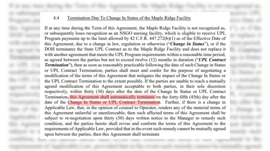 Beaver Valley Hospital's agreements with nearby facilities contain clauses that make it simple for the hospital to end the contract if the nursing home loses its UPL certification, one such agreement obtained byABC4.com shows.