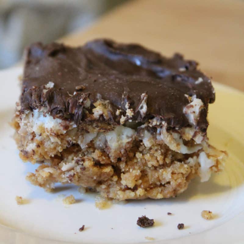 The blend of chocolate and coconut in these stacked bars makes them a must-try for anyone who loves Almond Joy or German chocolate cake.