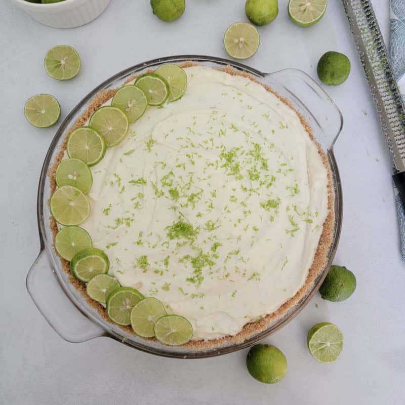 This pie, inspired by southern border recipes, adapted fromthis cookbookuses a margarita mix to achieve the genuine flavor of the classic tequila-based drink. A green food-safe coloring can be included for a more vibrant dessert, although no such addition was made in the pie shown.