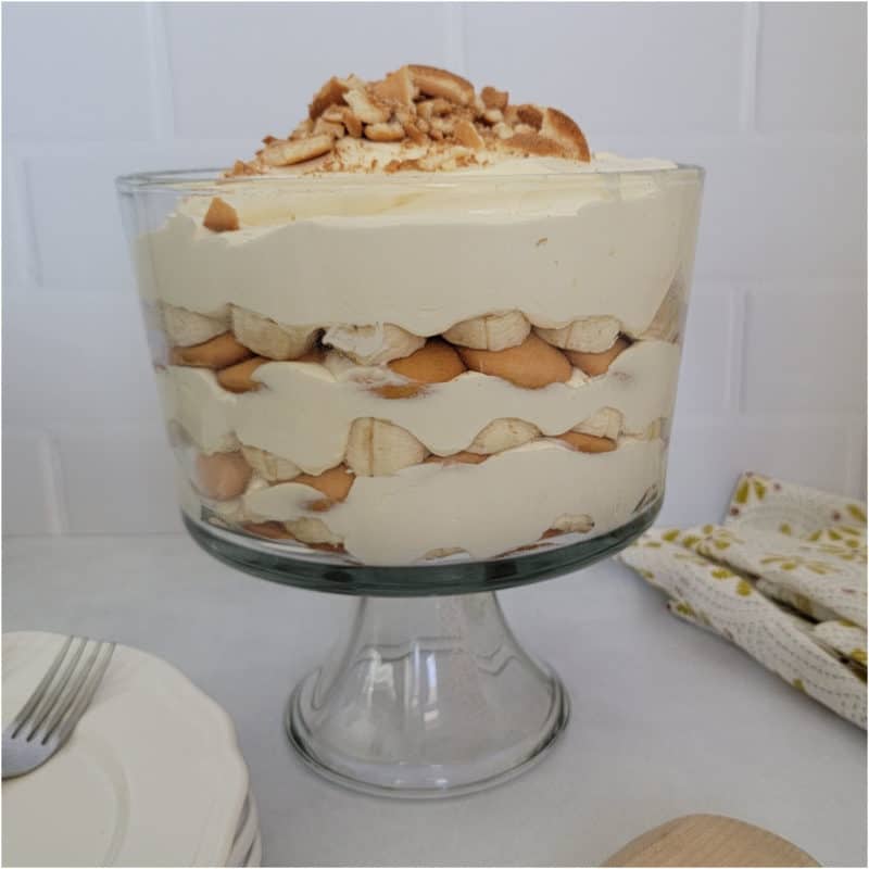 We enjoy enhancing the presentation by serving it in a trifle bowl to highlight the layers.