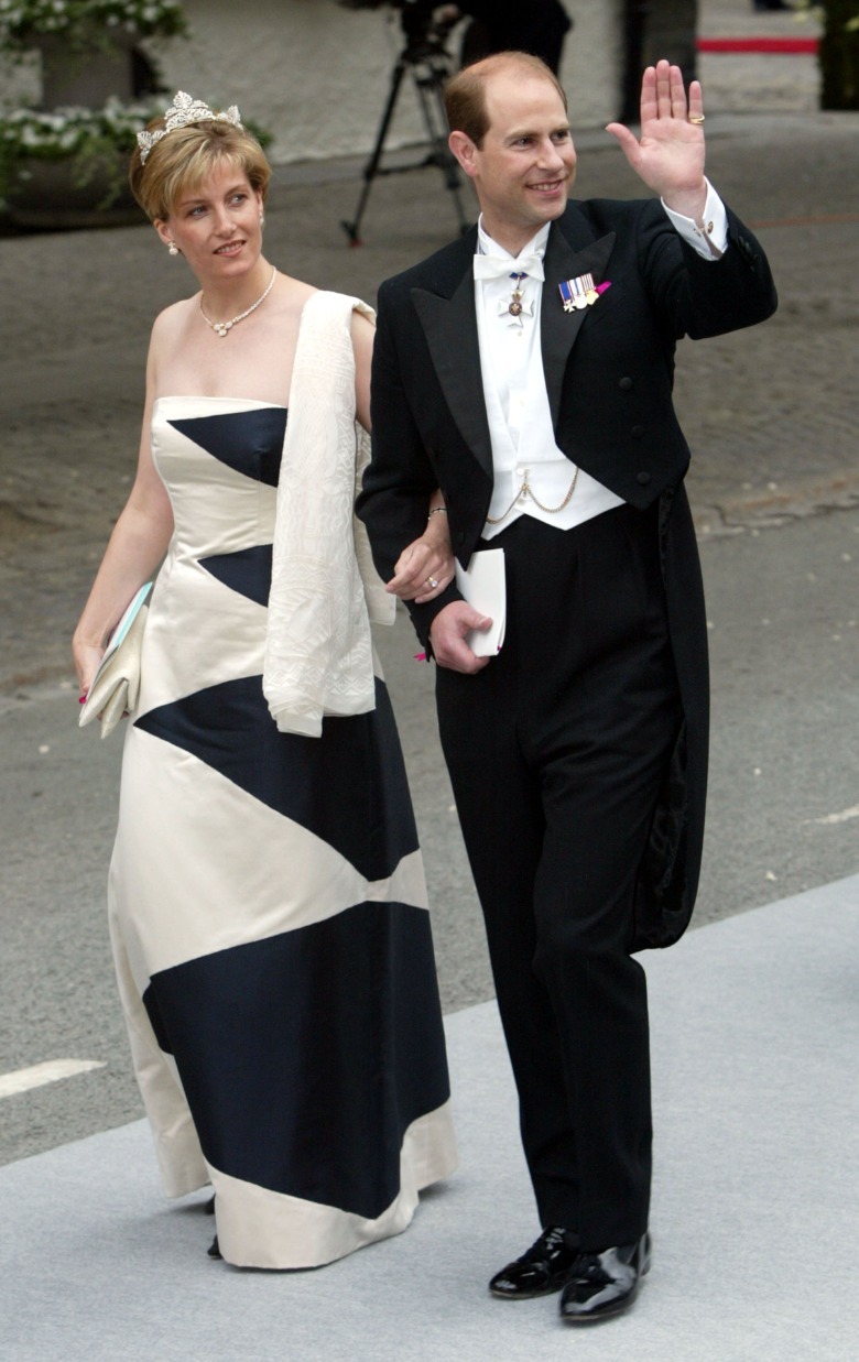 In 2002, Sophie went to the wedding of a Norwegian royal, Princess Märtha Louise, wearing a dress that violated one of the most significant rules ofwhat to avoid wearing to a wedding: Avoid trying to outshine the bride. The dress was long and white, featuring four triangular navy sections. Although the whole dress wasn't entirely white, the majority of the fabric was. Additionally, with the tiara and white scarf, the outfit could have easily resembled a simple wedding dress, which was clearly not suitable for someone attending as a guest.