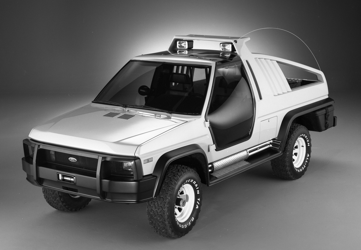 There's a distinct divider indicating a bed, so it's likely to have one of those. I do think the bed also appears quite small, which makes me believe it probably has a midgate. Is there a flying buttress there? It's hard to tell. Jason haswritten regarding the Ford Bronco Lobo concept, which featured a notably strong flying buttress system:
