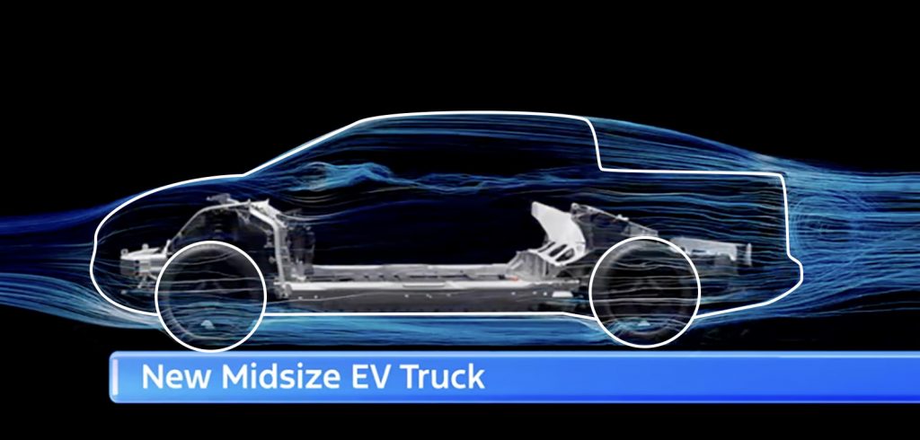 I agree, although the potentially confusing aerodynamic illustration below features a more rounded and pod-shaped front than one would typically expect from a truck. Even the Maverick has a fairly flat-nosed appearance.