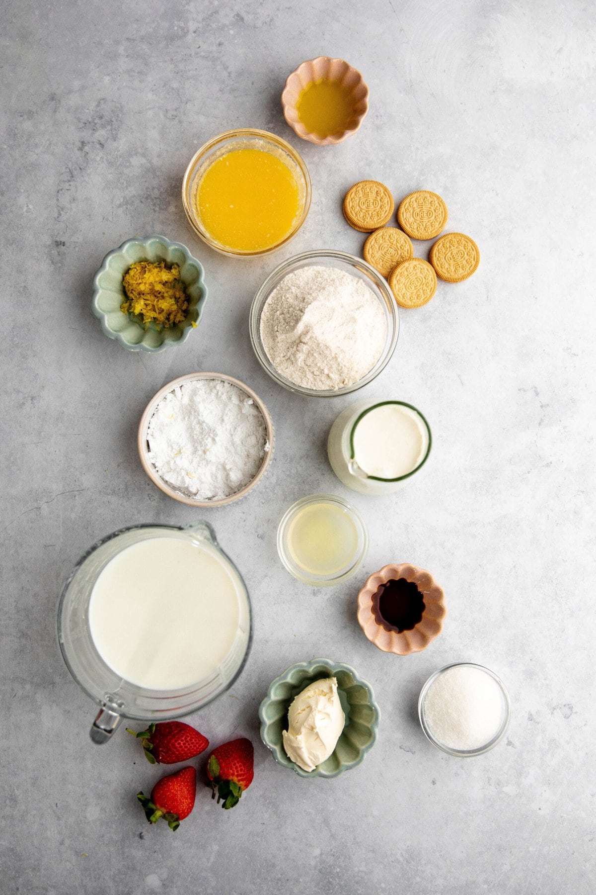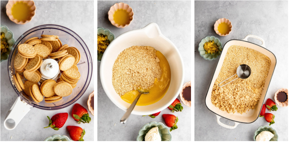 - Butter, melted: Assists in holding the cookie crust together.