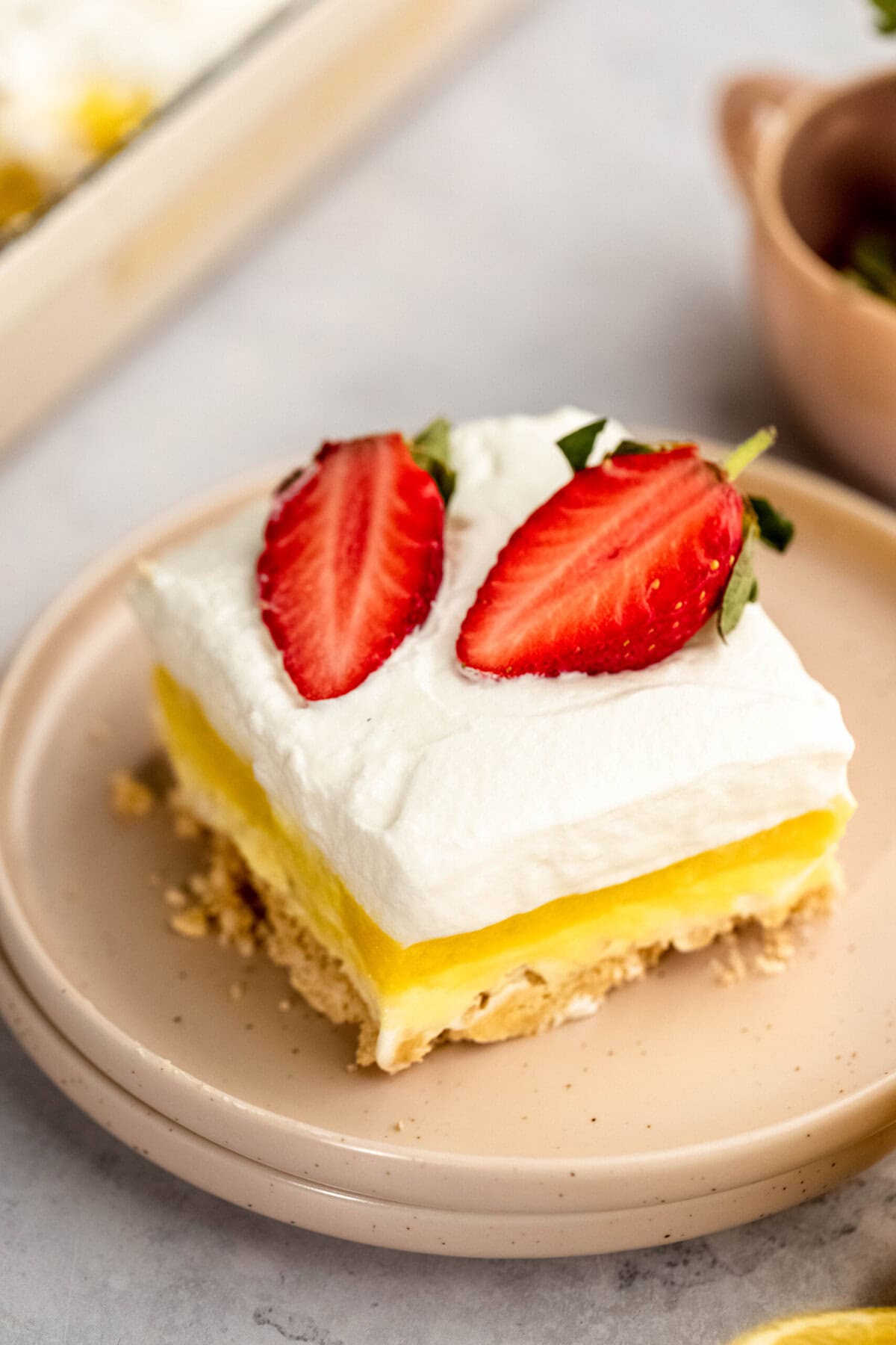This Lemon Lush dish is an ideal treat for those with a craving for something sweet and who enjoy the refreshing flavor of lemon (Hi, it's me!). It's simple to prepare, appears stunning, and is sure to be a favorite at any event. Savor your piece of bright citrus delight! Have a great week!
