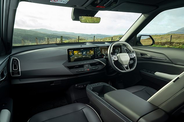 Many features of the EV5 high-spec package have been adapted from the much larger and more costly EV9 SUV (priced at £66,035). It comes with 19-inch alloy wheels (18-inch for the Air variant) and is equipped with an 81.4kWh battery. The robust new EV5 is driven by a powerful 214bhp electric motor, accelerating from 0 to 62mph in a quick 8.4 seconds, with a top speed capped at 102mph, and an estimated range of up to 329 miles (313 miles in my vehicle). Roughly similar in size to a Kia Sportage, the EV5 offers an enjoyable driving experience, performing well on straight roads, and the sport mode provides confidence during sharp turns. It handles well in urban environments, even in slower 20mph zones.