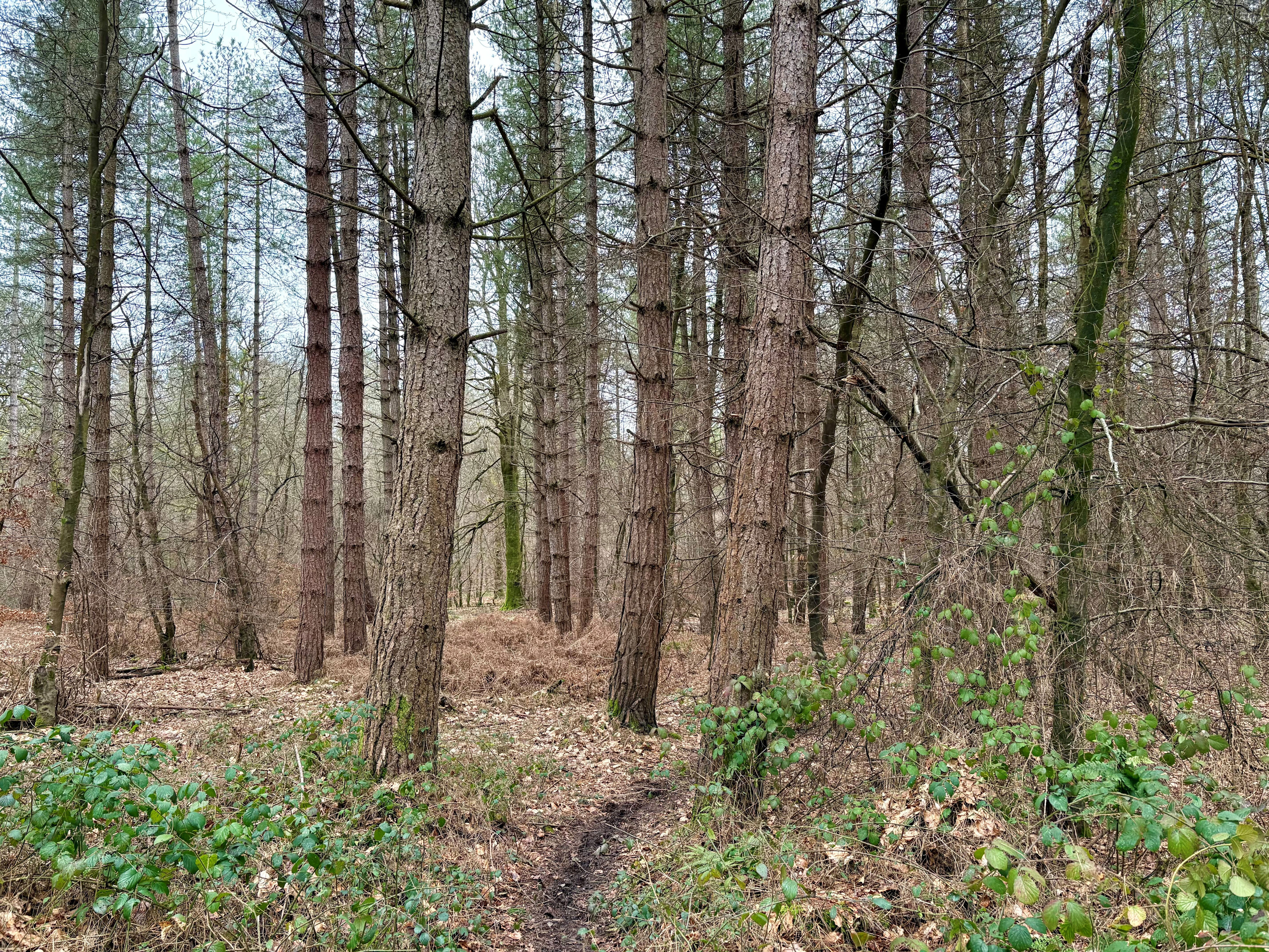 The restoration approach used at Penn Wood is called “continuous cover forestry.” This method involves periodically thinning plantation trees to allow more light and space into the woodland. This enables native saplings to grow, mature trees to spread, and forest floor plants to flourish. George Griffiths, the site manager, explains that this technique protects the forest floor and soil without completely removing what is already there.
