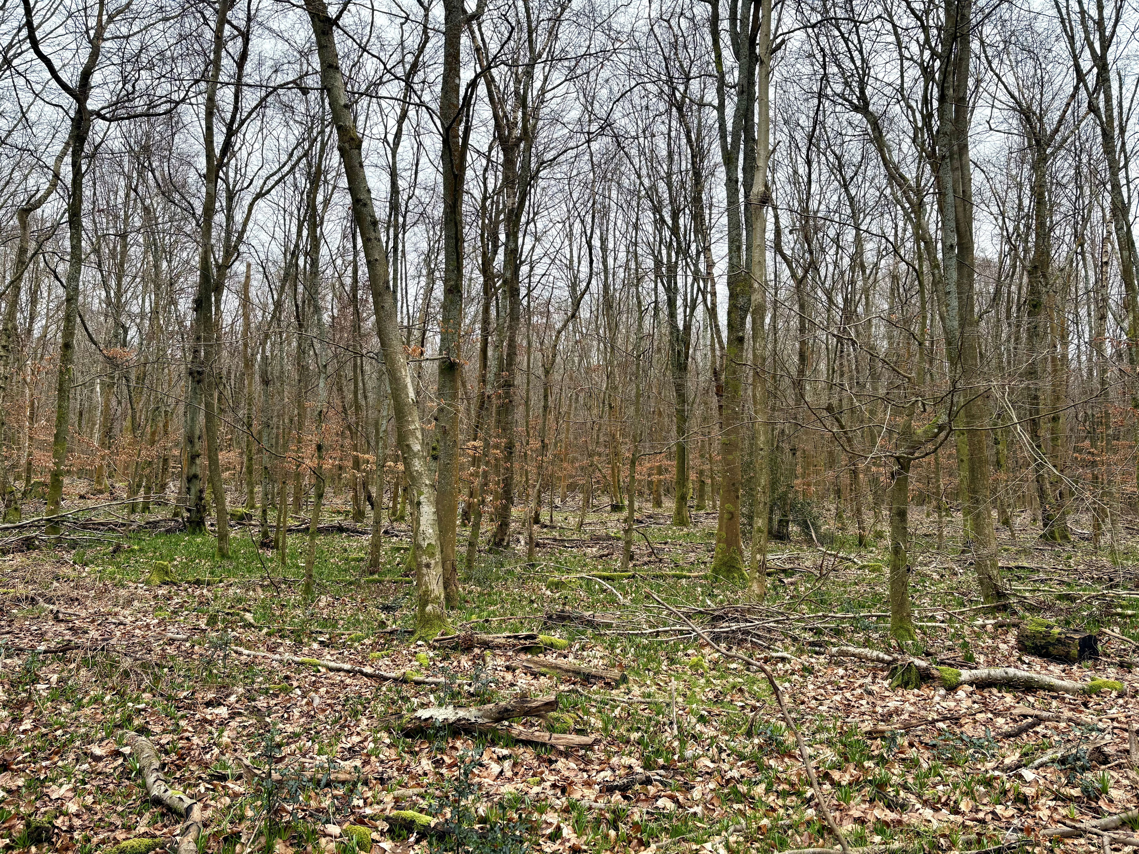 With this strategy, nature is given the chance to thrive. Young native birches are growing between moss- and lichen-covered oaks, and in early spring, the greenery on the woodland floor signals the return of bluebells that will bloom in the coming weeks.